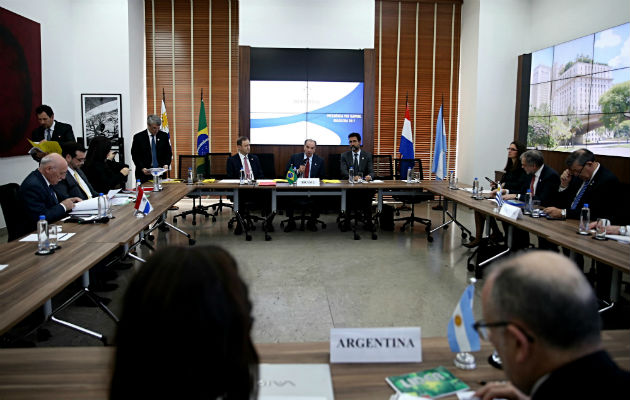 La decisión de los países fundadores del Mercosur de aplicar por unanimidad la cláusula democrática, que amplia la suspensión por carácter indefinido de Venezuela del bloque, descarta sanciones económicas, pero aisla políticamente al país andino, resaltaron hoy en Sao Paulo los cancilleres del grupo. No está previsto una sanción comercial, pues existen acuerdos bilaterales con Venezuela, lo que va a tener (con la aplicación de la cláusula) es un efecto de aislamiento político, afirmó en rueda de prensa conjunta en la Alcaldía de Sao Paulo el canciller brasileño Aloysio Nunes. El Protocolo de Ushuaia sobre Compromiso Democrático, más conocido como cláusula democrática del Mercosur, permite la aplicación de sanciones a los países en los que se rompa el hilo institucional, incluso de tipo económico y comercial. No obstante, Nunes subrayó que el protocolo de Ushuaia no prevé la expulsión porque queremos que Venezuela vuelva y esperamos que vuelva, vamos a acompañar atentamente el desdoblamiento de la situación y defendemos el diálogo constante. El jefe de la diplomacia brasileña aclaró que la suspensión a Venezuela determinada a finales del año pasado no fue por la cláusula democrática y sí por el incumplimiento de compromisos preestablecidos cuando Venezuela solicitó formar parte del bloque. Instamos al Gobierno a dialogar seriamente con la oposición, pero Venezuela no comparece a las consultas y tuvimos que dar el segundo paso, explicó Nunes, vocero de Brasil, país que tiene la Presidencia Pro Tempore del bloque. Después de la rueda de prensa, Nunes dijo a Efe que la suspensión es por tiempo indefinido. Además de Nunes, participaron este sábado de la reunión sus homólogos de Uruguay, Rodolfo Nin Novoa; de Argentina, Jorge Faurie, y de Paraguay, Eladio Loizaga.No tomamos esta decisión con alegría, manifestó el canciller uruguayo durante la rueda de prensa. Para Nin Novoa, Uruguay viene convencido de que esta es una acción que tomamos en favor del pueblo venezolano, sin renunciar al diálogo, sin renunciar al entendimiento. Uruguay y todos nosotros estamos comprometidos con la democracia del continente. En el mismo sentido, Faurie indicó que la decisión fue tomada con profunda tristeza, porque es pésimo poner por fuera de la puerta de la casa a un hermano y eso nos causa un gran dolor. Pero no se puede ser parte del Mercosur sin ser democrático. Realizamos todos los pasos para intentar que Venezuela cambiase su camino y abriese el diálogo. Queremos que paren con las muertes y la represión. Venezuela no tiene libertades y el Mercosur le dice basta a esa Venezuela represora y dictatorial, añadió el ministro argentino. Los cuatro países emitieron un comunicado conjunto en el que recordaron que toda ruptura del orden democrático constituye un obstáculo inaceptable para la continuidad del proceso de integración y, tras diversas consultas, se constató esa ruptura en Venezuela, que estaba en proceso de adhesión al bloque. Amparados en el Protocolo de Ushuaia, los cuatro países decidieron por unanimidad la suspensión a Venezuela de todos los derechos y obligaciones inherentes a su condición de Estado parte del Mercosur. Los Estados partes definirán medidas con el objetivo de minimizar los impactos negativos de esta suspensión para el pueblo venezolano y la suspensión cesará cuando se verifique el pleno restablecimiento del orden democrático en Venezuela, resaltó el comunicado conjunto. Nunes dijo que la suspensión de naturaleza política fue adoptada por consenso y es una sanción grave de naturaleza política contra Venezuela. Loizaga, en tanto, recordó que además del Protocolo de Ushuaia existe en el seno del Mercosur el Protocolo de Derechos Humanos al cual Venezuela nunca adhirió y que eso también pesó en la decisión de hoy tomada por los países fundadores del Mercado Común del Sur (Mercosur). La reunión de cancilleres en Sao Paulo se celebró un día después de la instalación en Caracas de la Asamblea Constituyente elegida el pasado domingo, que no ha sido reconocida hasta hoy por ninguno de los socios fundadores del Mercosur. Después de esa elección, cuya transparencia ha sido puesta en duda por la oposición y hasta por la empresa Smartmatic, responsable del proceso de votación electrónica en Venezuela, Argentina y Brasil se posicionaron a favor de la suspensión inmediatamente de Venezuela del Mercosur.