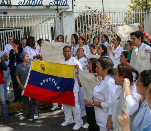 Enfermeras y universitarios protestan en Caracas por bajos salarios