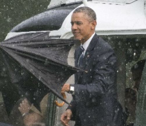 Presidente Barack Obama es recibido por aguacero en Whashington