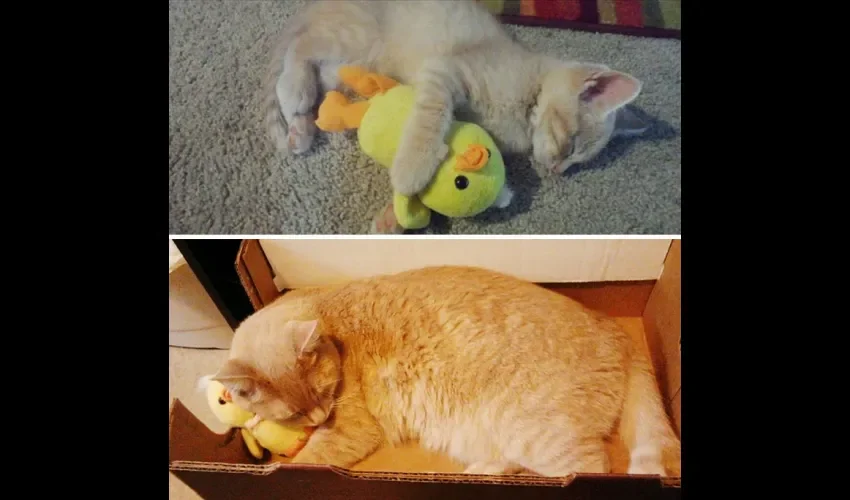 En esta nota podrás ver las más tiernas fotos capturadas de mascotas en un antes y despues con sus juguetes, aquellos que con el pasar del tiempo van quedando en un estado deplorable.