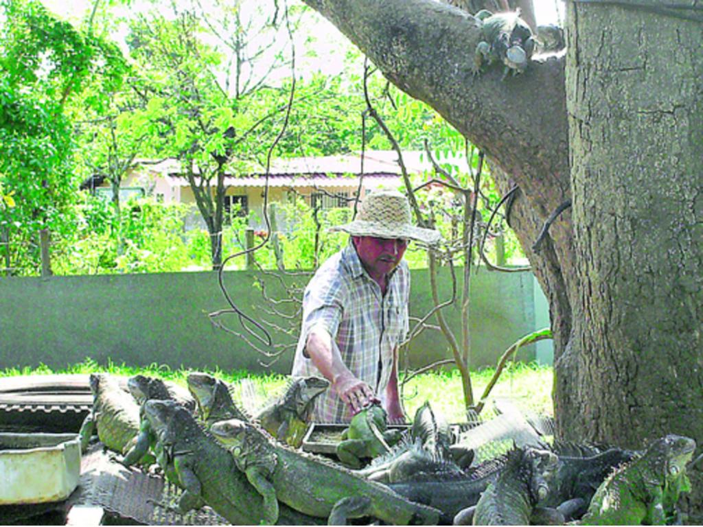 Zenaida Vásquez / Zenaida Vásquez Las iguanas se alimentan con papaya, guineos, naranja y muchas otras frutas.Iguana es un género de reptiles escamosos de la familia Iguanidae de zonas tropicales.Muchos saben que a los santeños les encantan las iguanas, hasta los chiricanos en los juegos de béisbol le tiran a los jugadores algunos de estos ejemplares, porque argumentan que en Azuero escasean.Eso no es tan cierto.Hay que visitar el sector de Bella Vista en Guararé y usted en cualquier momento se puede encontrar con una ellas.Este hecho se debe a que en esta comunidad existe una casa que cuenta con más de 200 iguanas, que conviven libremente entre los árboles y la familia Zarzavilla.Benigno Zarzavilla es el dueño de las iguanas, ya que tiene 20 años de estar criando estos animales.Imagínense que en la pasada Feria de San Isidro en Guararé subastaron una de estas iguanas para beneficio de la iglesia de Las Mercedes y esta fue comprada en 160 dólares.Don Benigno llegó a tener más de mil iguanas en su casa, pero un día decidió soltar unas 500 y por ello en los alrededores de Bella Vista existen muchas iguanas.Zarzavilla considera que costo del alimento que comen estos animales era muy alto.Antes costaba 13 dólares y hoy día está en 28.50 dólares.Ellas también se alimentan con papaya, guineos, naranja y muchas frutas, pero al igual también se les da alimento para conejos.Por ese motivo, ha continuado con menos iguanas, pero él relata que su trabajo fue difícil, ya que comenzó con tres y cuatro iguanas que las encerraba para que sacaron los pichones en jaulas y luego las soltaba.Las iguanas comienzan a poner sus huevos en febrero, marzo hasta abril, ya que al empezar las primeras lluvias cuando hay hierba, las iguanitas empiezan a salir.Cabe destacar que para que una iguana sea adulta debe tener entre 3 a 5 años y su periodo de nacimiento es de 72 días.