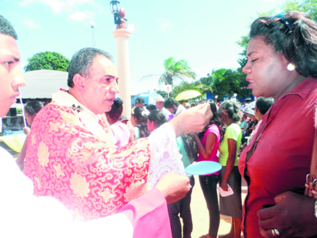 Bajo un radiante sol, pero una rica brisa de verano, los devotos, muchos sentados y otros de pie, escuchaban en el parque y alrededores la palabra de Dios en agradecimiento a los favores recibidos del Cristo de Esquipulas, al que consideran milagroso.