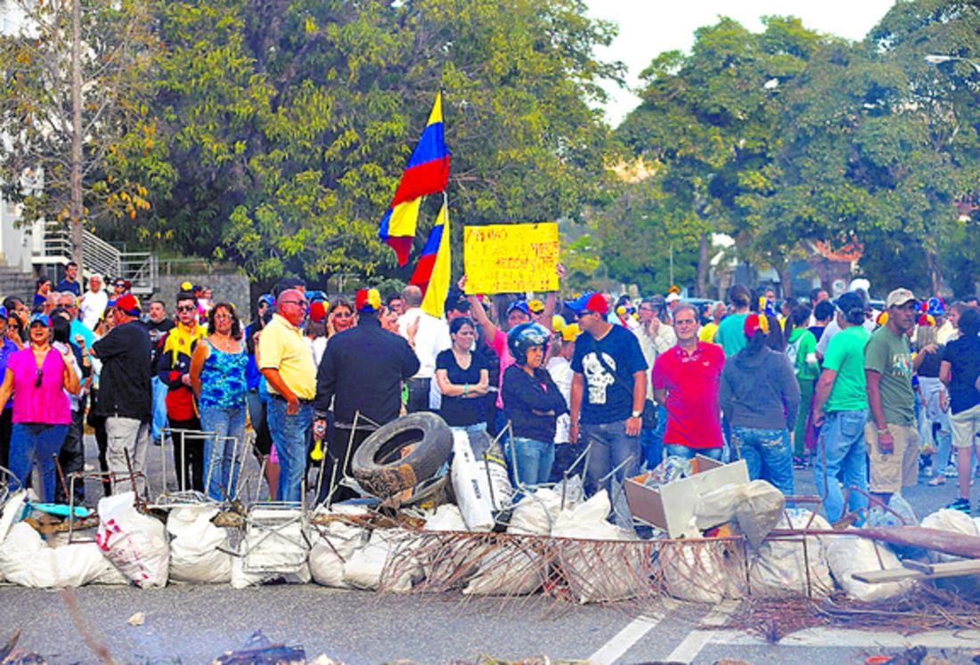 Manifestantes realizaron bloqueos de vías ayer en Caracas y otras ciudades del país en rechazo al gobierno, en medio de la crisis política que lleva tres semanas y ha dejado 14 muertos en Venezuela.