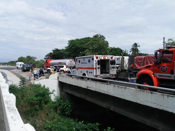 En horas de la mañana de este viernes 5 de mayo, se registró un accidente de tránsito en la vía Interamericana, en el sector de de Río Grande, provincia de Coclé, muy cerca del puente. En el hecho se vieron involucrados dos autos tipo 4x4, uno era de la Autoridad de los Servicios Públicos (ASEP). Dos personas resultaron heridas tras el accidente. Al lugar de los hechos llegó una ambulancia y unidades del Benemérito Cuerpo de bomberos de la República de Panamá (BCBRP).
