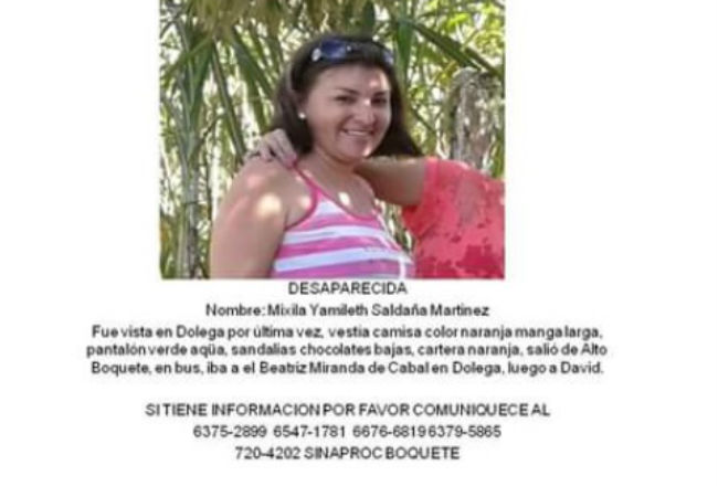 Maxila Yamileth Saldaña Martínez reportada como desaparecia en la provincia de Chiriquí ya fue localizada en esta misma provincia. La joven de 39 años fue reportada desde el viernes a las 9:30 de la mañana cuando salió de su residencia ubicada en la barriada Virgen de Guadalupe en el distrito de Boquete en la provincia de Chiriquí. El Director General del Sistema Nacional de Protección Civil, José Donderis informó en su cuenta de Twitter que la joven desaparecida en Chiriquí es localizada con vida. La joven cursa estudios en la Universidad Autónoma de Chiriquí, en la escuela de Educación Física y sufre problemas de depresión.