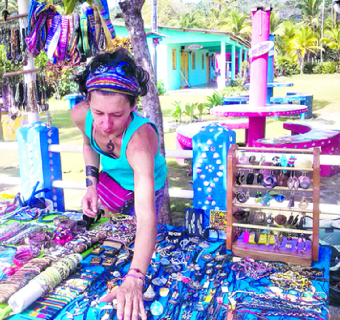 Collares, pulseras, llaveros y otros tipos de bisutería hechas con materiales obtenidos de la playa, ofrece la portuguesa Ana Machado a los turistas y locales que visitan el sector de Isla Grande en la costa arriba de la provincia de Colón.