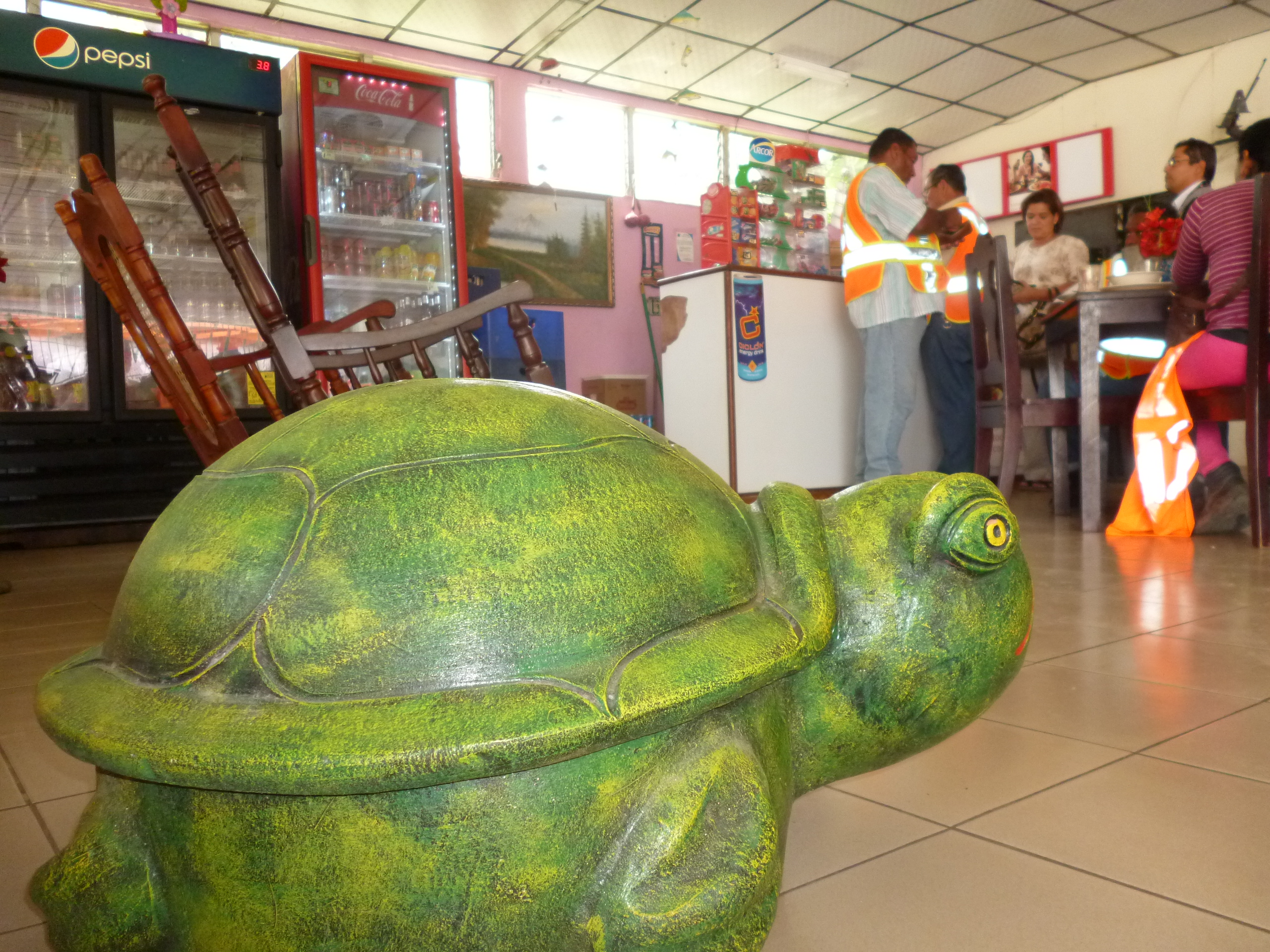 Las tortugas gigantes de color verde son, para muchas personas, un verdadero atractivo y se consideran piezas muy llamativas para quienes suelen visitar lugares como restaurantes, fondas y almacenes, entre otros, en la ciudad de Santiago de Veraguas.